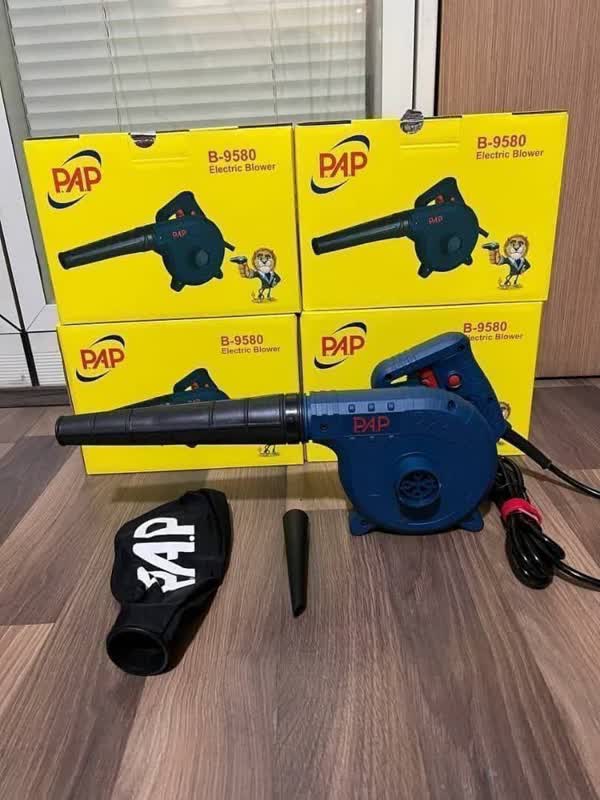 ابزارآلات برقی و شارژی اقتصادی برند پی ای پی PAP دمنده و مکنده با کیفیت و قدرت فوقالعاده بالا قابلیت استفاده به عنوان باد پاش و جاروبرقی مجهز شده به موتور 580 وات واقعی حداکثر دور در حالت آزاد برابر با 18000 دور بر دقیقه قابلیت ایجاد حجم هوای 2/8 متر مکعب بر دقیقه دارای سیستم خنک کاری جهت کاهش دما مجهز شده به دیمر 6 حالته ارائه شده با کیسه جمعآوری گرد و غبار دارای قفل کن سوئیچ جهت استفاده مداوم به همراه 2 عدد نازل،کیسه جمعآوری گرد و غبار و توری خوشدست با وزن سبک 1200 گرمی